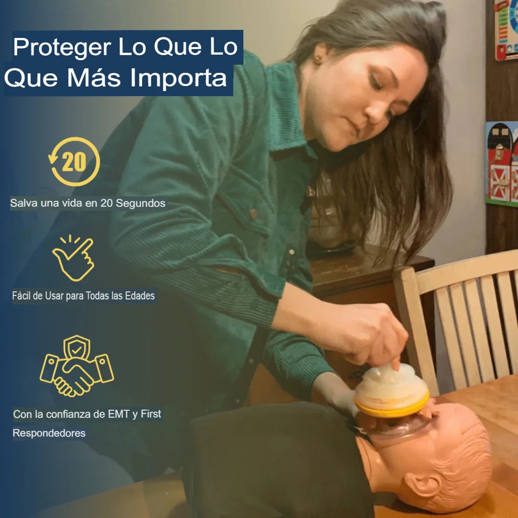 AirFlow tiene una válvula unidireccional que evita que la obstrucción se desplace más en la tráquea. Para usarlo, coloque la máscara sobre la boca y nariz de la víctima, presione suavemente para generar succión y luego tire hacia arriba para despejar las vías respiratorias de forma segura y eficaz.